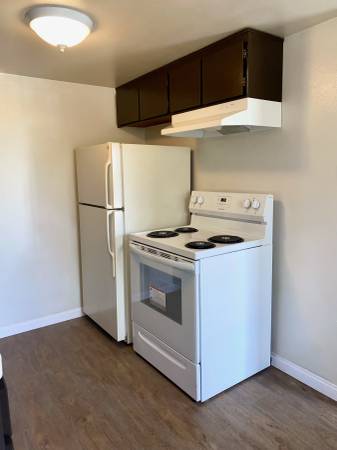 Our apartments feature a cozy living room area, wood plank flooring, a spacious kitchen with a new stove, and plenty of cabinet space. All apartments have ceiling fans in the dining room and bedroom, in addition to central AC and heating.