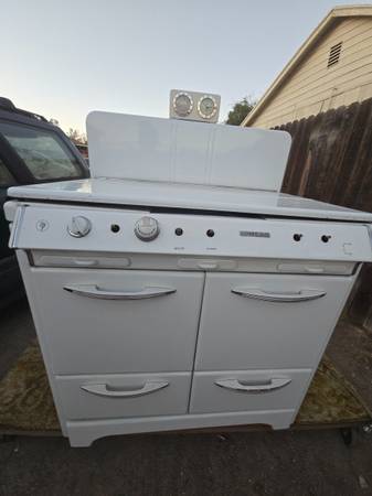 Mint condition has two ovens broiler griddle and much more has all knobs and parts first 300 takes no lowballs trades or delivery serious buyers only !selling for half the value.great for large family or collector.last pic comparison.