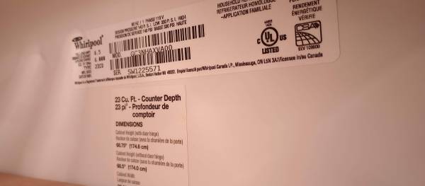 Whirlpool Counter depth side by side refrigerator. Works fine but sometimes needs defrosting every 4-5 months. Asking $250 or best offer.