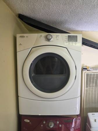 Whirlpool duet front load gas dryer in good woking condition come wiht 60 days warranty for more information please call me at a or visit at a 2413 Niles St