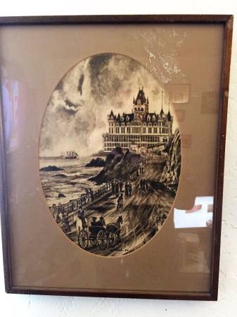 J A Kendall 1974 Print signed VIEW of San Francisco The Old Cliff House a print of a sepia pen and ink wash Drawing call-