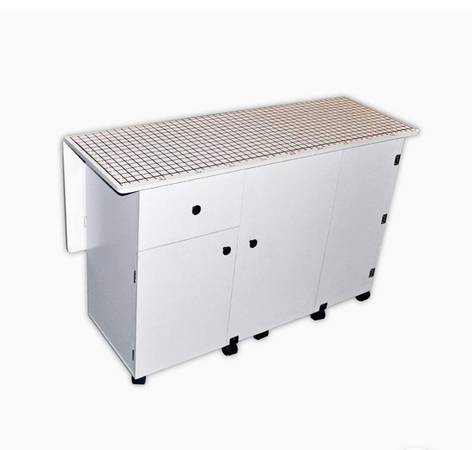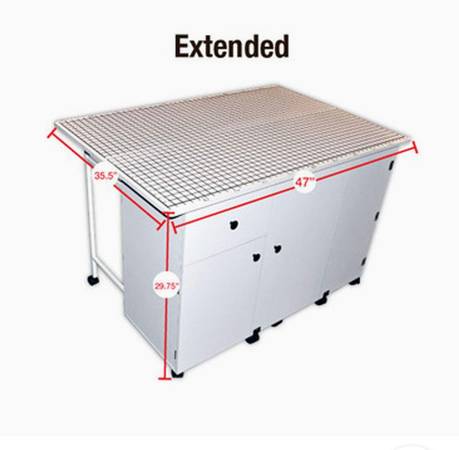 SIZE TO FIT INTO CORNER OF ROOM ROLL OUT AND OPEN FOR FULL USE.