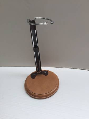 Included is a removable wood and metal display stand which is 8" tall.