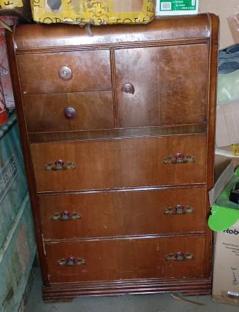 Antique Waterfall highboy dresser Pickup only local in person at Darrel's mini storage in oildale Bring cash Please reply to posts by email or text