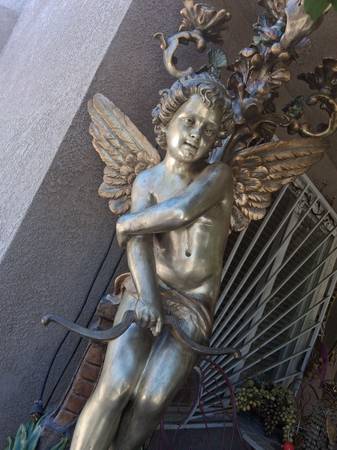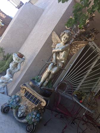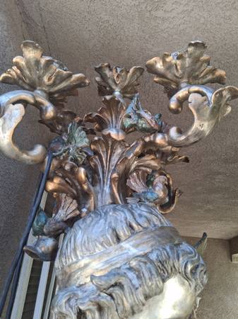 Beautiful bronze cast cherub post lamp. Thus is a huge heavy piece. Has 3 of the 5 flame glass shade that top the lantern. This is a statement piece like no other. Originally sells for over 10g. You will have to see in person to get the opulence this piece makes. Definitely a piece for the eccentric person.