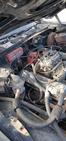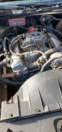 complete project car ready to be restored. has been sitting for 7-8 years and will need the tank drained and cleaned. it does run, with an outside fuel source, and sounds very nice. i was told the motor was "gone through" but have no idea what that really means. it does have an edelbrock manifold and carb, MSD ignition system and a nice lopey cam. has new door panels, headliner...the car does have some rust here and there and will need some work. i will sell it outright for 4000.00 or trade for something else built big block chevy motor/trans combo, supercharged small block chevy motor...87-92 trans am or Camaro Z28, IROC, dodge? old hot rods......