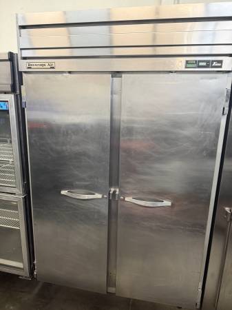 Perfect for restaurants, bakeries, and other commercial food settings, this refrigerator features a durable and clean-looking exterior with stainless steel front doors and gray painted sides. Featuring 49 cu. ft. of interior storage, it also provides enough room to store your product.