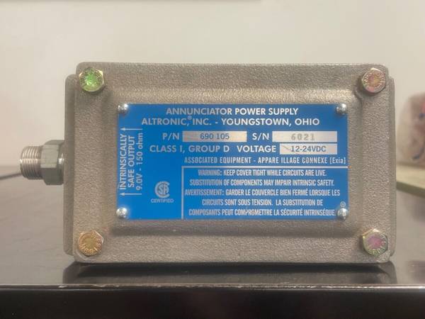 1x) Altronic - Annunciator Power Supply - Part # 690-105 - Ser. # 6021 - $60.00