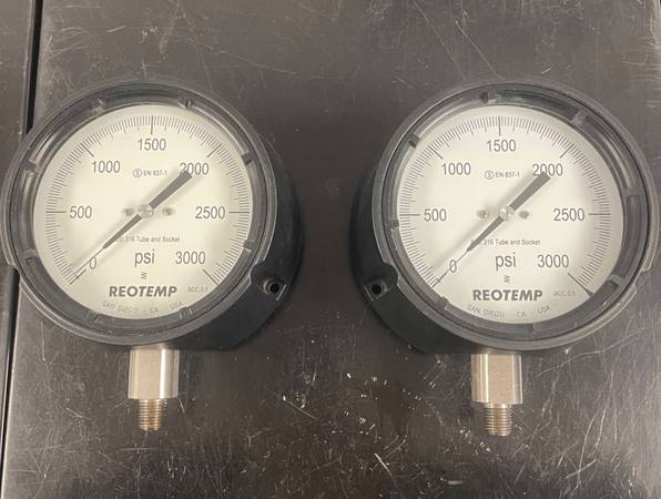 "LOT OF 2" REOTEMP - Indust. Gauge - PT45T - 0-3000 PSI - 4.5” Face - $60.00