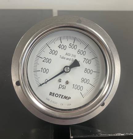 REOTEMP - 3 Hole Front Flange Press. Gauge - 0-1000 PSI - 4” Face - $20.00