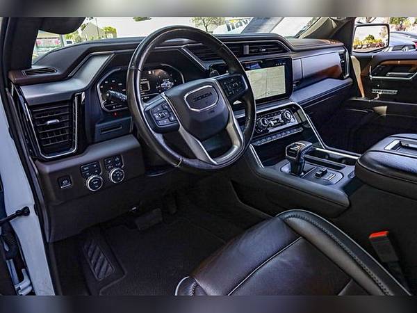 **Discover Unmatched Luxury and Power with the 2022 GMC Sierra 1500 Denali!** Step into the world of premium performance and unrivaled sophistication with the 2022 GMC Sierra 1500 Denali, a truck that perfectly marries luxury with brute strength. With a mere 35,365 miles on its odometer, this powerhouse is ready to deliver years of reliable performance while turning heads wherever it goes. **Exquisite Design Meets Rugged Capability** Dressed in a pristine white exterior, the Sierra 1500 Denali exudes an aura of elegance and confidence. Its sleek lines and commanding presence make a strong statement on the road, while the refined craftsmanship ensures it stands out in any setting. Complementing its striking exterior, the interior boasts a rich brown color scheme, creating a warm and inviting cabin environment. The unknown type of material adds a touch of mystery, but rest assured, every detail is crafted with the utmost attention to luxury and comfort. **Unleash the Beast Within** At the heart of this magnificent machine lies the EcoTec3 6.2L V8 engine, a powerhouse that delivers an exhilarating 420 horsepower and 460 lb-ft of torque. Paired with a 10-speed shiftable automatic transmission, this truck offers seamless power delivery and remarkable towing capabilities, making it the perfect companion for both work and play. Whether you're hauling heavy loads or cruising down the highway, the Sierra 1500 Denali ensures a smooth and commanding ride every time. **Award-Winning Excellence** This 2022 GMC Sierra 1500 Denali is not just about looks and power; it's a testament to quality and dependability. Recognized by J.D. Power and Associates in their Initial Quality Study (IQS) and Vehicle Dependability Study (VDS), this truck stands among the top models for its outstanding performance and reliability. Additionally, it has earned a spot in Kelley Blue Book's Best Resale Value: Top 10 Models, ensuring that your investment holds its value over time. **Luxury Meets