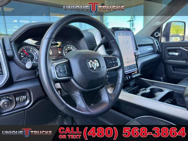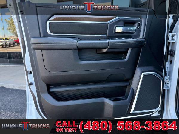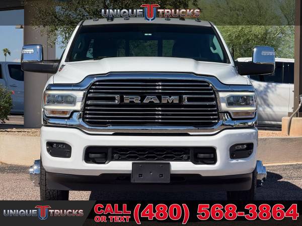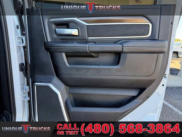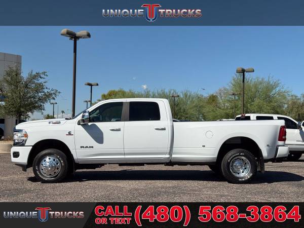 This 2024 Ram 3500 Laramie Crew Cab 4x4 Dually is one of those lifted trucks that grabs your attention the moment you see it. With its all matching color-key Bright White Clear Coat exterior and sharp chrome details, this truck gives off a clean and bold look. Inside, you’ll find a smooth black leather interior that’s both comfortable and built to last. It’s a one-owner truck that’s been fully serviced and well cared for, ready to impress its next owner with both looks and power.Under the hood, this Ram 3500 packs the legendary 6.7-liter I6 Cummins High Output Turbo Diesel engine, paired with the heavy-duty 6-speed AISIN automatic transmission. This setup is known for its unmatched strength and reliability, giving this dually the kind of towing and hauling power that makes it ready for work or play. Whether you’re hauling a large trailer, pulling a fifth wheel, or just cruising the highway, this lifted truck delivers a strong and smooth performance every time.Inside, the cabin is loaded with comfort and technology. It features the Uconnect® 5 Nav system with a large 12-inch touchscreen display, complete with Apple CarPlay®, Google Android Auto™, and SiriusXM® 360L. You’ll enjoy crystal-clear sound from the Alpine® 9-speaker system with subwoofer, making long drives feel even better. The full-function media hub includes USB ports and an auxiliary input, giving you easy access to all your devices.For convenience and comfort, this truck includes heated and ventilated front seats, heated rear seats, and dual-zone automatic temperature control. The driver and passenger both get 8-way power-adjustable seats for personalized comfort, while the heated steering wheel adds that extra touch on cold mornings. The fold-flat rear storage and in-floor storage bins add practical space for your gear.This Ram 3500 Laramie also comes with the optional Laramie Level B Equipment Group, which brings in top-tier features like a 17-speaker Harman Kardon® premium audio system, power-adjustable pedals with memory, rain-sensitive wipers, power-folding mirrors, and LED reflector headlamps. You’ll also find features like ventilated front seats, a rear power-sliding window, and a remote tailgate release that make everyday driving easier.Safety and confidence come built in with the ParkSense® front and rear park-assist system, Blind-Spot Monitoring with tag trailer and cross-path detection, and LED fog lamps for better visibility. This truck also includes forward and reverse utility lights, automatic-dimming mirrors, and a host of driver-assist features designed to keep you aware and protected wherever you go.Performance-wise, the 6.7L High Output Cummins engine delivers serious torque, while the dual rear wheels and 220-amp alternator make this lifted dually perfect for heavy towing. With the 5th Wheel/Gooseneck Towing Prep Group and the 50-gallon fuel tank, this truck is ready for long hauls without compromise. The LT235/80R17E on/off-road tires and polished aluminum wheels give it both a tough stance and a smooth ride.At Unique Trucks, the price you see is the price you pay — no hidden markups, no surprise add-ons, and no addendum fees. We believe in honesty and transparency, so you know exactly what you’re paying for. Our trucks, including this lifted Ram 3500, are fully serviced and ready for the road.We make things easy with our no-obligation delivery program. You can have this truck delivered right to your doorstep with no commitment required. Test drive it from the comfort of your own home, make your best deal over the phone, and if you don’t love it, you don’t buy it — it’s that simple.We love trade-ins and always look forward to helping customers find the right lifted trucks to fit their needs. We encourage you to come visit us and see our selection in person. This 2024 Ram 3500 Laramie Crew Cab 4x4 Dually is ready to turn heads everywhere it goes and ready for its next proud owner to enjoy. __________________________ 2024* 2023* RAM* DODGE* RAM TRUCKS* DIESEL TRUCKS* LARAMIE EDITION* CREW CAB* HIGH OUTPUT* DIESEL* AISIN TRANSMISSION* DIESEL TRUCKS* DUALLY* DRW* DUAL REAR WHEEL* DIESEL TRUCKS* RAM TRUCKS* DIESEL* RAM DIESEL* DUALLY* DUAL REAR WHEEL* 4X4* LIFTED TRUCKS* DODGE TRUCKS* AISIN* LOW MILES* LOW MILEAGE* RELIABLE* ONLY*