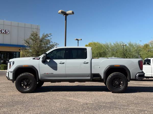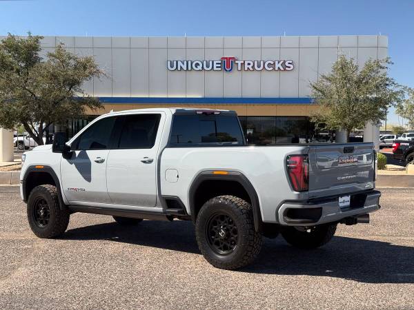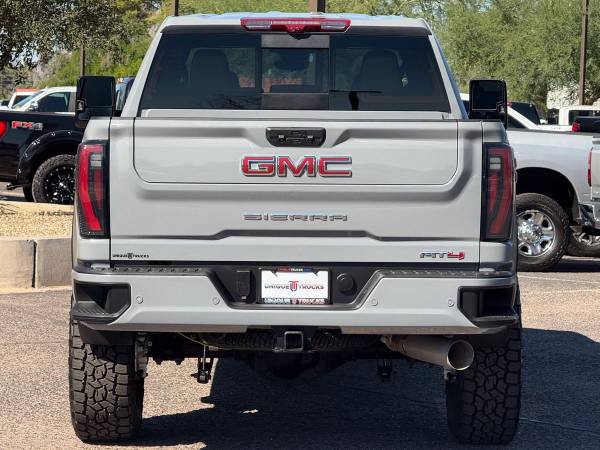 Here’s your chance to own one of the nicest, cleanest, and hardest-to-find lifted trucks out there — a 2025 GMC Sierra 3500HD AT4 Edition Crew Cab 4x4 finished in the eye-catching Thunderstorm Grey Metallic with bold black accents. This truck looks sharp from every angle and is guaranteed to turn heads wherever it goes. It’s powered by the 6.6-liter Duramax V8 turbo diesel engine paired with the smooth-shifting Allison 10-speed automatic transmission, giving you power, control, and dependability all in one package.This lifted AT4 sits on a professionally installed 3-inch Rough Country red upper control arm kit with M1 monotube shocks, giving it the perfect lifted stance while still keeping a comfortable ride. It rolls on H132 20x9 8x180 12mm Asphalt Hostile Anvil wheels wrapped in brand new 37x12.50R20LT Toyo Open Country A/T III tires, making this truck look aggressive and ready for anything. From the street to the job site, this lifted GMC Sierra 3500HD has the presence and performance to back it up.Inside, the cabin is designed for comfort and style with a clean Jet Black and Kalahari leather interior. The heated and ventilated front seats and heated second-row outboard seats keep everyone comfortable year-round. The power sunroof brings in light and air, while the Bose premium sound system fills the cabin with rich, clear sound. There’s also wireless phone charging, adaptive cruise control, and a premium set of floor liners to keep the interior looking sharp.The GMC Premium Infotainment System features a 13.4-inch full-color touchscreen with built-in Google compatibility, navigation, Bluetooth, and both wireless Apple CarPlay and Android Auto. You also get SiriusXM with 360L, OnStar, and a rear camera mirror for added visibility. With features like the head-up display and bed view camera, this truck combines modern technology with practicality.Safety is a top priority with the Sierra HD Pro Safety package, which includes trailer side blind zone alert, rear cross-traffic alert, HD surround vision, lane departure warning, forward collision alert, front pedestrian braking, and a driver safety alert seat. Automatic emergency braking, following distance indicator, and Intellibeam auto high beams all add confidence to your drive whether you’re towing or cruising through town.Performance-wise, this 3500HD AT4 doesn’t hold back. It features a 2-speed active electronic Autotrac transfer case, trailer brake controller, auto-locking rear differential, Stabilitrak with trailer sway control, and hill start assist. The truck is ready to tow with a factory gooseneck/5th wheel prep package, trailer hitch guidance with hitch view, and a heavy-duty trailering package built for real work.On the exterior, the truck stands tall and aggressive with its 20-inch high-gloss black aluminum wheels, LED projector headlamps, front LED fog lamps, LED roof marker lamps, and spray-on bed liner. The GMC MultiPro tailgate makes loading easy, while the power-retractable assist steps with LED lighting add both function and style. The power-folding and extending mirrors include heating, auto-dimming, turn signals, and perimeter lighting for safety and convenience.This AT4 also features a power sliding rear window, rain-sensing wipers, bed power outlets, and LED cargo bed lighting for when you’re working late or early. The 120V AC outlets in both the cab and cargo bed make it easy to power tools or devices on the go. From its 3.42 rear axle ratio to its 12,100-pound GVWR, this GMC Sierra 3500HD AT4 is ready to handle serious towing and hauling with confidence.At Unique Trucks, the price you see is the price you pay — no hidden markups, no addendums, just honest pricing on the cleanest, nicest lifted trucks around. Every vehicle is fully serviced and ready to hit the road, and this 2025 Sierra 3500HD AT4 is no exception. It’s a truck that looks good, drives great, and has all the right upgrades.We also offer No Obligation Delivery, where your new truck can be delivered right to your doorstep. Test drive it from the comfort of your home, make your best deal over the phone, and if you don’t like it, you don’t buy it — simple as that. We love trade-ins and encourage you to come visit and check out our full selection of trucks and lifted trucks in person. This lifted Sierra AT4 is ready for its next owner and guaranteed to impress. ______________________________________________________ 2025* 2024* GMC* SIERRA* 3500HD* 3500* DIESEL* DURAMAX* DIESEL TRUCKS* LIFTED TRUCKS* GMC TRUCKS* AT4* LOW MILES* LOW MILEAGE* RELIABLE* ONLY* DIESEL TRUCKS* DURAMAX* LIFTED TRUCKS* LIFTED GMC* LIFTED SIERRA* DURAMAX* DIESEL* ALLISON TRANSMISSION* HOSTILE WHEELS* RELIABLE* ONLY*