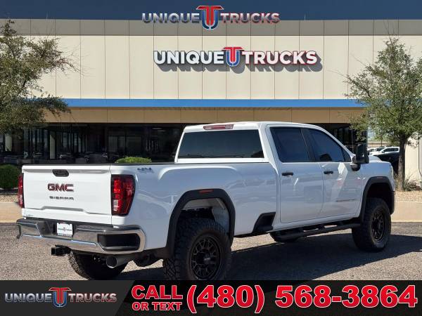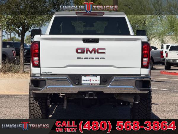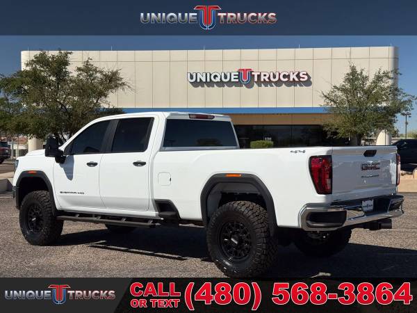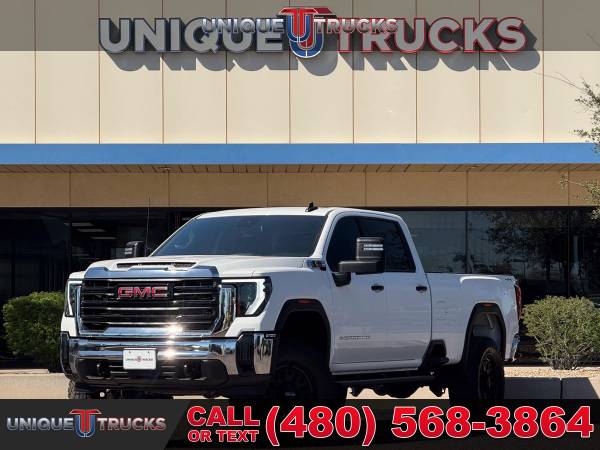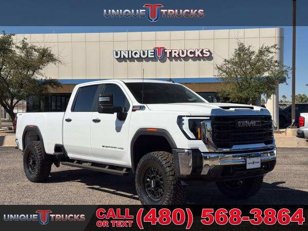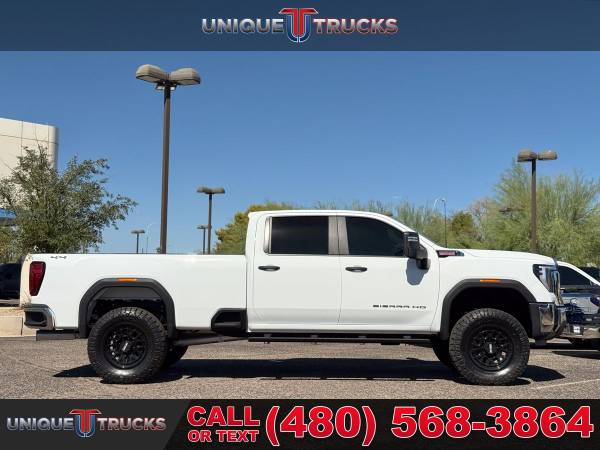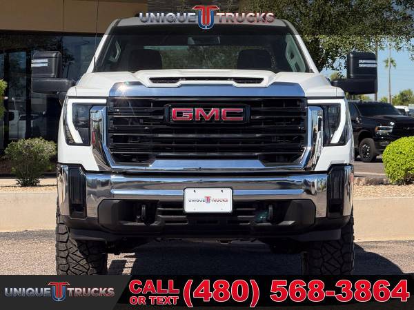 Finding a 2025 GMC Sierra 3500HD Pro Edition Crew Cab 4x4 in this condition is not easy, and this one is as clean and eye-catching as they come. Finished in Summit White with a Jet Black cloth interior, this lifted long bed truck commands attention the moment you see it.Power comes from the legendary 6.6-liter Duramax turbo diesel engine paired with the smooth Allison 10-speed automatic transmission. This combination is built for towing, hauling, and everyday driving with the kind of strength and dependability that makes these trucks so sought after.This Sierra has been upgraded the right way with a professionally installed 3-inch Rough Country upper control arm kit supplied by Unique. It sits perfectly on Method MR321 20x9 gloss black wheels wrapped in 37-inch Nitto Ridge Grappler tires, giving this truck an aggressive stance while keeping the ride comfortable and controlled.The exterior keeps a sharp and practical look with chrome front and rear bumpers, animated LED projector headlamps, heated power-folding trailering mirrors with turn indicators, and black assist steps installed for easier entry. CornerStep rear bumpers and front recovery hooks add both style and function.Step inside and you’ll find comfort and space designed for work or play. This Sierra offers power windows, power door locks, rear HVAC vents, a roomy 40/20/40 front bench seat with center armrest storage, and a 60/40 split folding rear bench. Rubberized vinyl floor covering makes cleanup simple after a day on the job or trail.Technology and connectivity are ready at your fingertips with GMC’s infotainment system and a 7-inch color touchscreen. It includes Bluetooth streaming, wireless Apple CarPlay, and Android Auto compatibility. A SiriusXM trial subscription, rear seat reminder, and an available 120-volt power outlet make this truck as convenient as it is capable.Safety is built in with forward collision alert, lane departure warning, following distance indicator, automatic emergency braking, front pedestrian braking, and Intellibeam high beams. Rear vision camera, teen driver mode, and buckle-to-drive features give you extra peace of mind.Performance features include a 2-speed electronic transfer case, auto-locking rear differential, heavy-duty air cleaner, StabiliTrak with trailer sway control, hill start assist, and integrated trailer brake controller. With a GVWR of 12,250 lbs, this truck is ready for heavy towing while keeping control and stability.The Pro Edition also adds useful features like EZ lift power lock and release tailgate, LED cargo bed lighting, tinted glass, and a rear-window defogger. Combined with its long bed setup, this Sierra 3500HD is built to handle both big jobs and long trips with ease.This 2025 GMC Sierra 3500HD is fully serviced and ready for its next owner. At Unique Trucks, we make it simple with our no-obligation delivery service. We’ll bring the truck right to your doorstep for a test drive at home. Make your best deal over the phone, and if you don’t like it, you don’t buy it. We love trade-ins and encourage you to come check out our full lineup of trucks and lifted trucks today. ____________________________ 2025* 2024* GMC* SIERRA* 3500HD* 3500* PRO* CREW* CREW CAB* DURAMAX* DIESEL* LONG BED* DIESEL TRUCKS* LIFTED TRUCKS* DIESEL* DURAMAX* ALLISON TRANSMISSION* 4X4 TRUCKS* LOW MILES* LOW MILEAGE* RELIABLE* ONLY*
