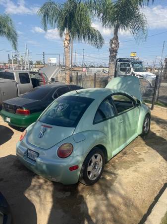WE HAVE A 00 VW BUG FOR SALE. IT STARTS AND RUNS WITH A GAS SAVING 4 CYLINDER ENGINE WITH AUTO TRANSMISSION. IT HAS POWER DOORS AND LOCKS, CD, CRUISE, AND REAR TINTED WINDOWS. FIRST 1900 DRIVES IT...