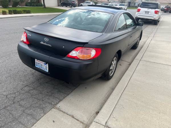 Hello selling my 2002 Toyota Solara it’s a 4cyl automatic I love it but I need a bigger car for my grand kids if not I would not sell it it’s a great car very reliable and is good on gas and has cold a/c clean title in hand no lights on I’m asking $2900 or best offer show contact info