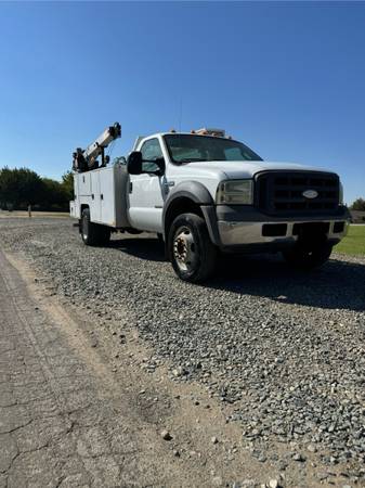 Ford f550 mechanic, service truck, 6.0 diesel. Runs strong and ready to be put to work. 62,xxx original miles on it. 75% tread left on the tires. Douglass utility bed on it with an auto crane rated for 3,200lbs maximum weight capacity(missing controller). Super clean truck. Call 8 six 5 4 o 7 7 three 88