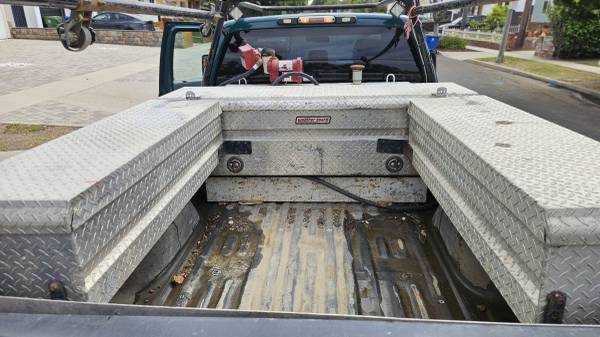 Tool Box. Ladder racks, auxiliary fuel tank in bed, is removable