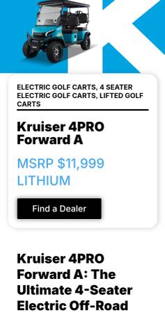 Selling a like new 2024 Kandi 4pro forward facing Lithium-Ion powered golf cart. 60 miles.