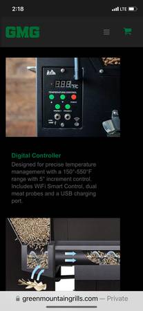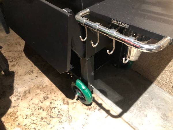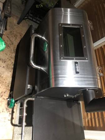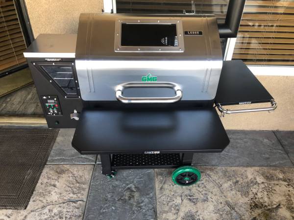 GMG SS pellet grill with stainless steel. Has the folding front shelf on front and side. Side shelf has stainless steel hooks for all your bbq accessories. Loaded with options. Will run on Ac/Dc, WiFi to your cell phone, temperature probes, interior lighting, all stainless steel grills, stainless steel hopper lid, smokestack, full lid. This is a loaded grill. This is a brand new grill never been used. It has been prepped and put together. My loss your gain. Purchased two of these had them put together, primed and this one has not be used. Brand new. (just paid over $1275.) This is there deluxe model grill. $950. Firm /661/979/4three18