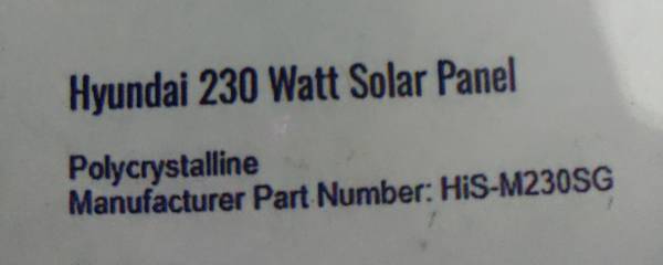 Hyundai 230W SOLAR PANELS PRE OWNED