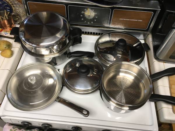 Premium cookware by Cutco ,Dutch oven , double boiler/steamer, large skillet w/ lid , large frying pan w/ glass lid, never been used: Dutch oven and steamer / double boiler , asking $ 450. $ 1500....