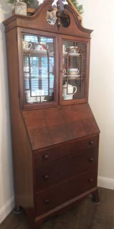 We are moving, furniture must go. Antique Secretary Desk with Curio - $250 Low Secretary Desk - $200 Round table with marble top - $100 Contact via CL mail relay, will listen to offers