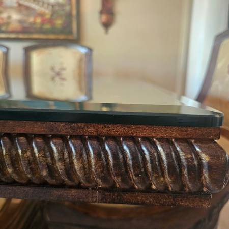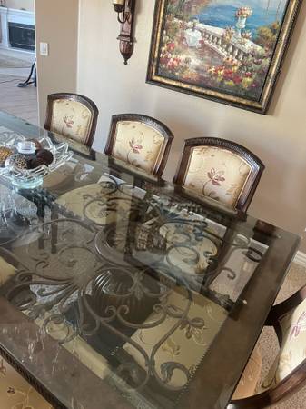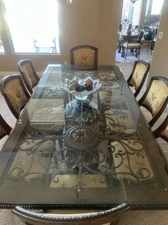 Beautiful formal dining table with eight chairs .4 FT wide . 8FT LONG .30” high .