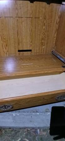 This is a HUGE Armoire. It is 76" H x 20"D x 43" W. The 2 drawers, the Inside, and top shelf are clean. The back can be customized for your equipment since the perforations are still intact.