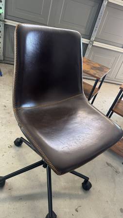 Great office chair, leather, adjustable height, wheels and adjustment work well.