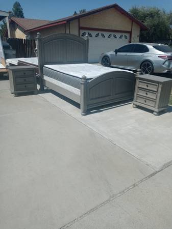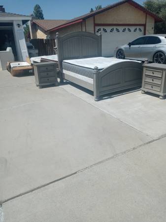 Queen bed- complete with two night stands. Has every thin you need. Bought from Ashley furniture a year ago , barely used.