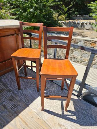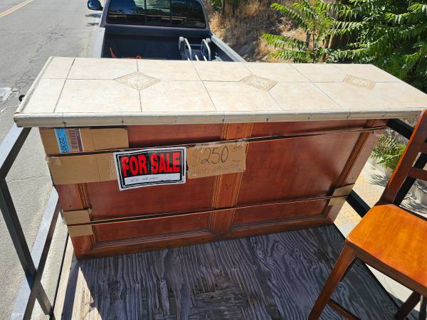 Wooden Bar With Tile Top. Very Sturdy. Comes With Two Bar Chairs. Can Deliver For a Fee.