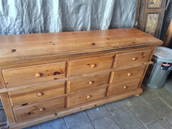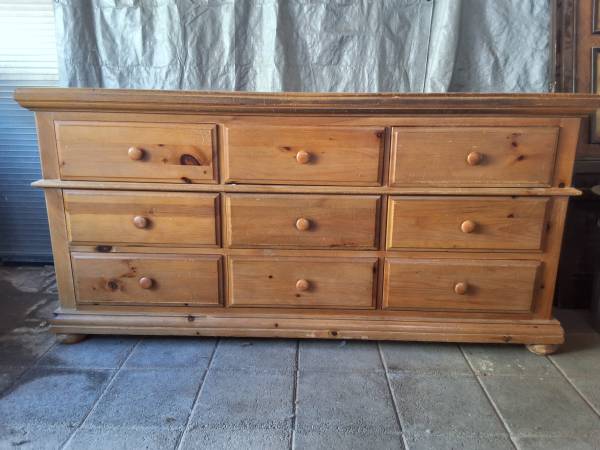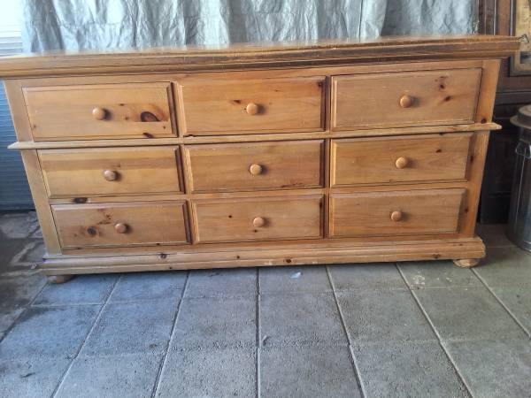 All wood super heavy dresser...needs cleaning and top needs to be refinished...9 drawers...serious inquries only...firm price....measurements 73 wide...20 deep...36 tall...txt only please....only...