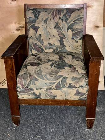Very Comfortable, dark wood tone, beautifully handmade chair. From floor to the top of the back of chair is 37 inches High x 29 inches Wide.