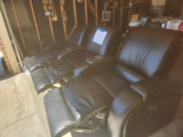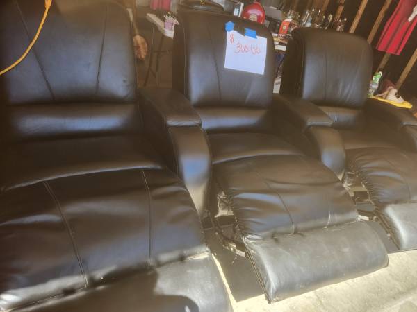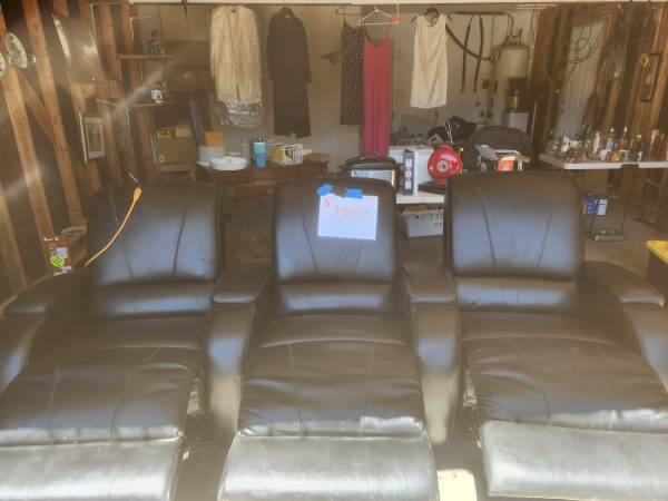 BLACK LEATHER THEATER CHAIR ALL ELECTRIC PURCHASED AT COSTCO FOR $1200. NEW CONDITION.