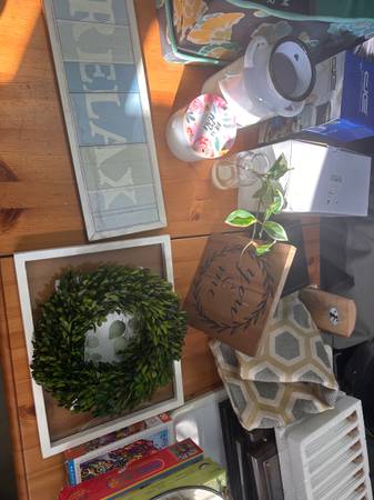Home decor, seasonal decor, crafting supplies, pillows, kitchen decor, kitchen supplies.