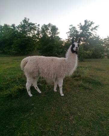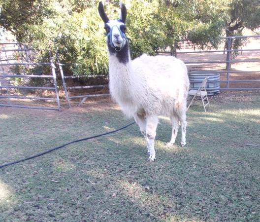 LLAMA MALE INTACT WHITE WITH BLACK VERY LARGE HALTERED AND READY TO GO SELLING FOR $1500.00 CALLS ONLY six six one 366 three zero five three CALLS ONLY NO TEXT NO EMAILS
