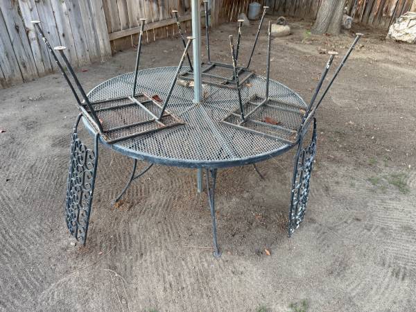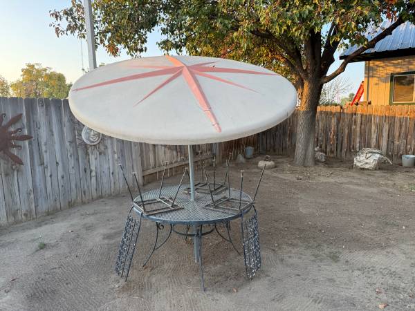 For sale vintage patio table , 3 chairs & fiberglass canopy
