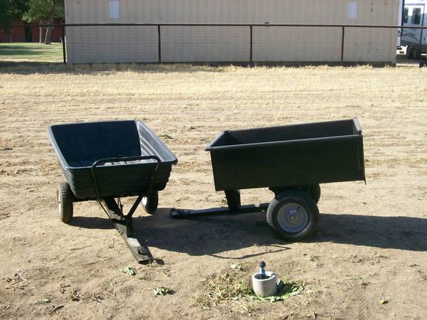 2 BARNYARD DUMP KARTS GROUNDWORK MFG.ONE IS STEEL ONE IS HEAVY PLASTIC AGRIFAD MFG GREAT FOR FEEDING.LIKE NEW CALL OR TEXT GREAT TO USE AS WHEELBARROW PLEASE NO EMAILS TEXT OR CALL PLEASE $ 75.00...