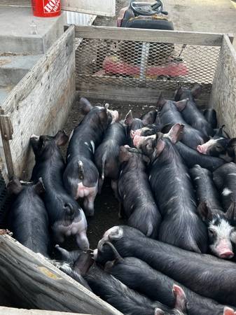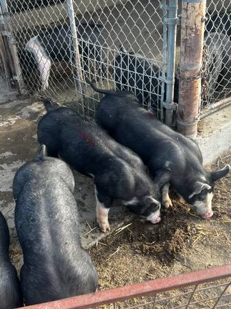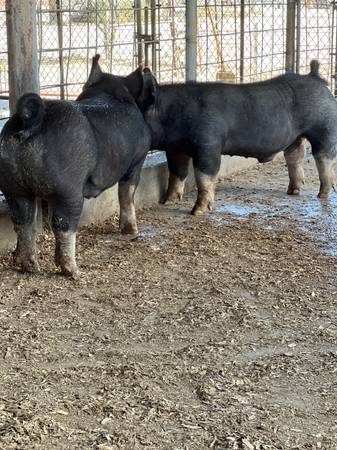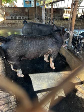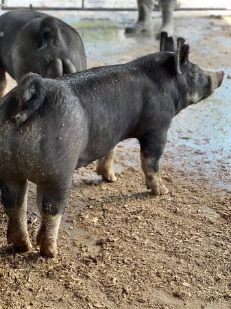We have available young Boars, open gilts, bred gilts, show pigs and feeder pigs. Also whole hogs. 1/2 hog and 1/4 hog Bred gilts guaranteed (8) live babies. Pure Berkshires, Hampshire and durocs we also have Berkshire/Hampshire crosses Duroc/Hampshire crosses