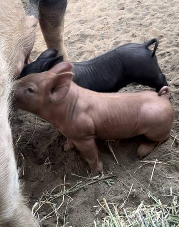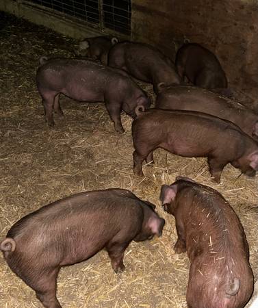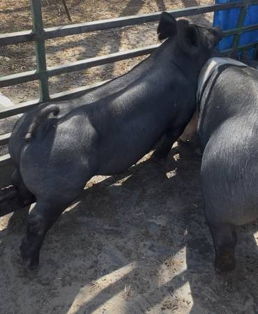 We have available young Boars, open gilts, bred gilts, show pigs and feeder pigs. Also whole hogs. 1/2 hog and 1/4 hog Bred gilts guaranteed (8) live babies. Pure Berkshires, Hampshire and durocs we also have Berkshire/Hampshire crosses Duroc/Hampshire crosses