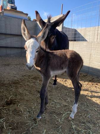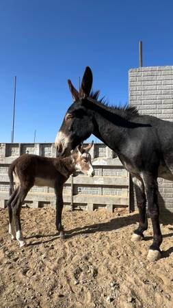 Paint Mammoth donkey Jenny DOB 6/24/2025 Super gentle donkey bred Delivery available Lebec CA Sire 14.5 hands Dam 13.5 hands