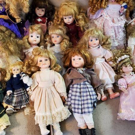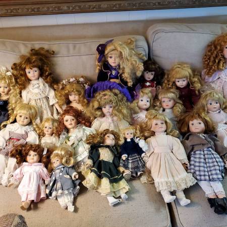 This is a lot of 28 porcelain vintage dolls. Excellent condition. They were displayed so they have some dust. Non smoking, no pets. Call 719 two three one 1278. No texts or emails. Call and leave a...