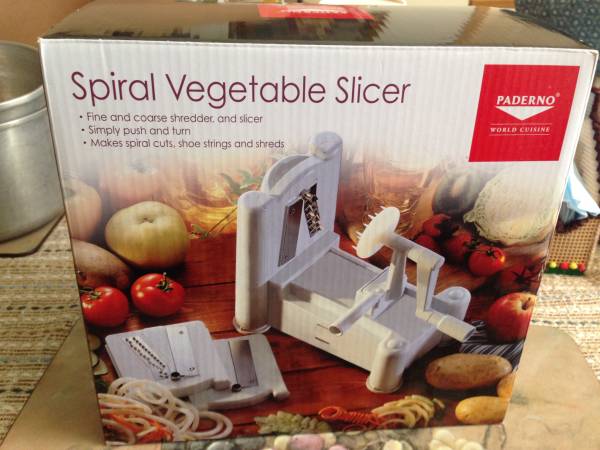 Paderno Spiral Vegetable Slicer, brand new and still in box. Highly recommended brand by America's Test Kitchen.
