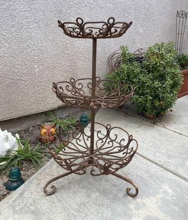 The 3 Tiered stand measures just under 31" in height Top - 12 1/4" in diameter Middle - 14 1/2" in diameter Bottom - 16 3/4" in diameter