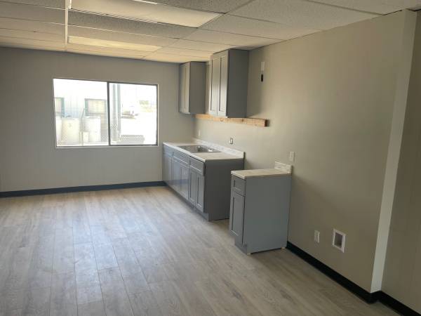 Truck yard and newly remodeled beautiful office thousand square foot, full kitchen, two room, full bath and laundry hook ups fenced asphalt grinding lot