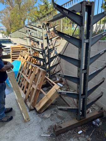 2 HEAVY DUTY CANTILEVER RACKS FOR ONLY $900 FOR BOTH. ALREAD DISASSEMBLED AND READY TO BE PICKED UP AND HAULED AWAY.