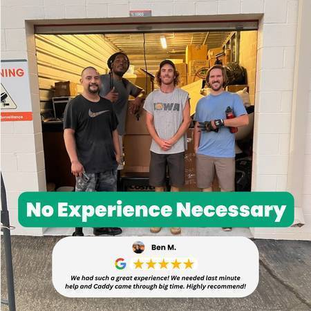 - Our movers are movers .. no drivers here! That means you don’t need a CDL or to go thru driving school again. You just need some muscles and to look good in Caddy swag.
