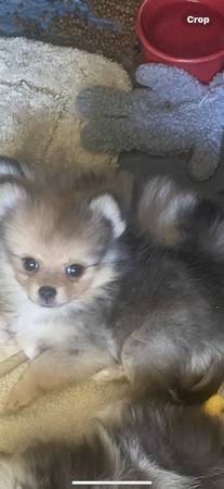 Merle Poms girl and boy has shots and very loving , 10 weeks old rehoming fee have parents on site