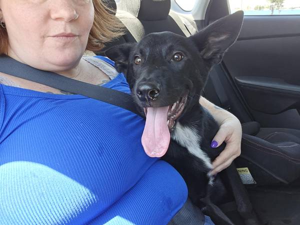 2 7 month old shepherd mixes. One black with some white. And one all white with blue eyes.